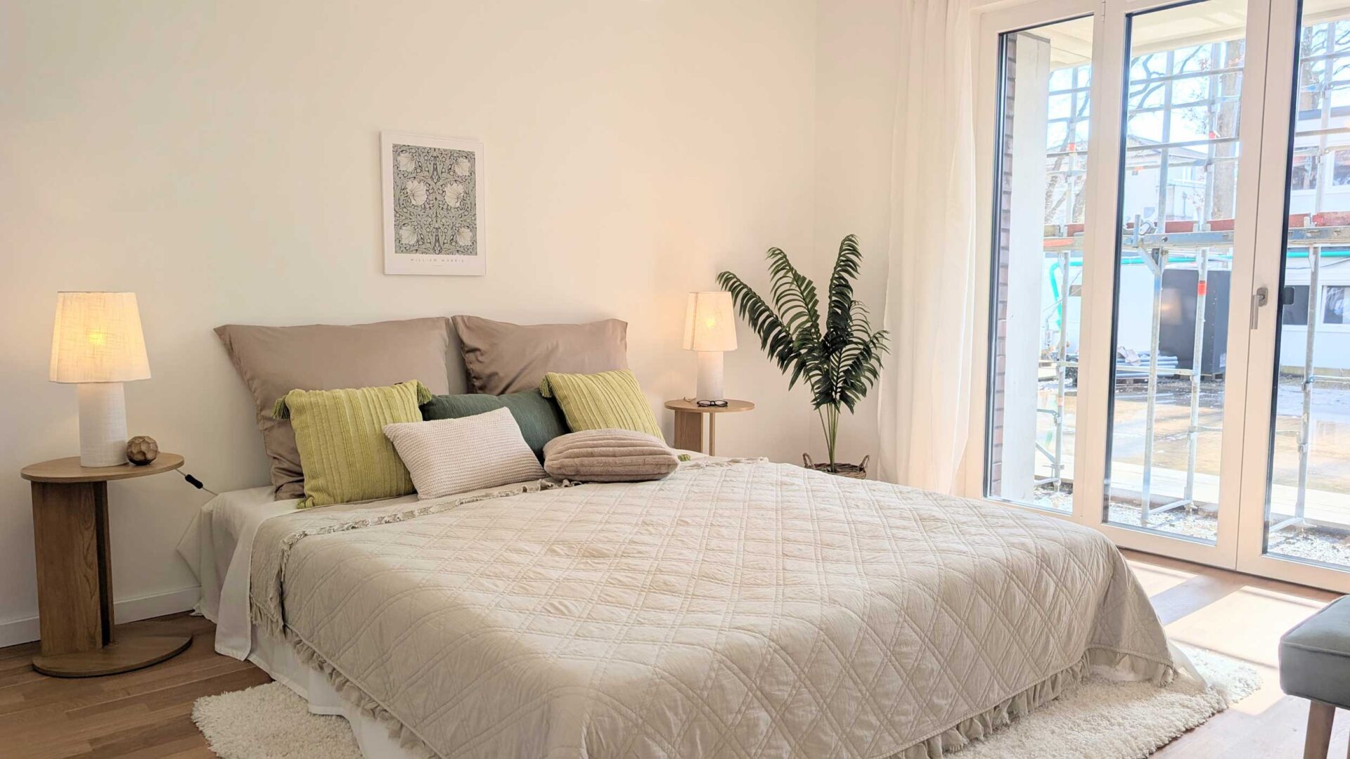 | Wohnungen | 97 barrierefreie Einheiten mit zwei, drei oder vier Zimmern und Garten, Balkon oder Dachterrasse |